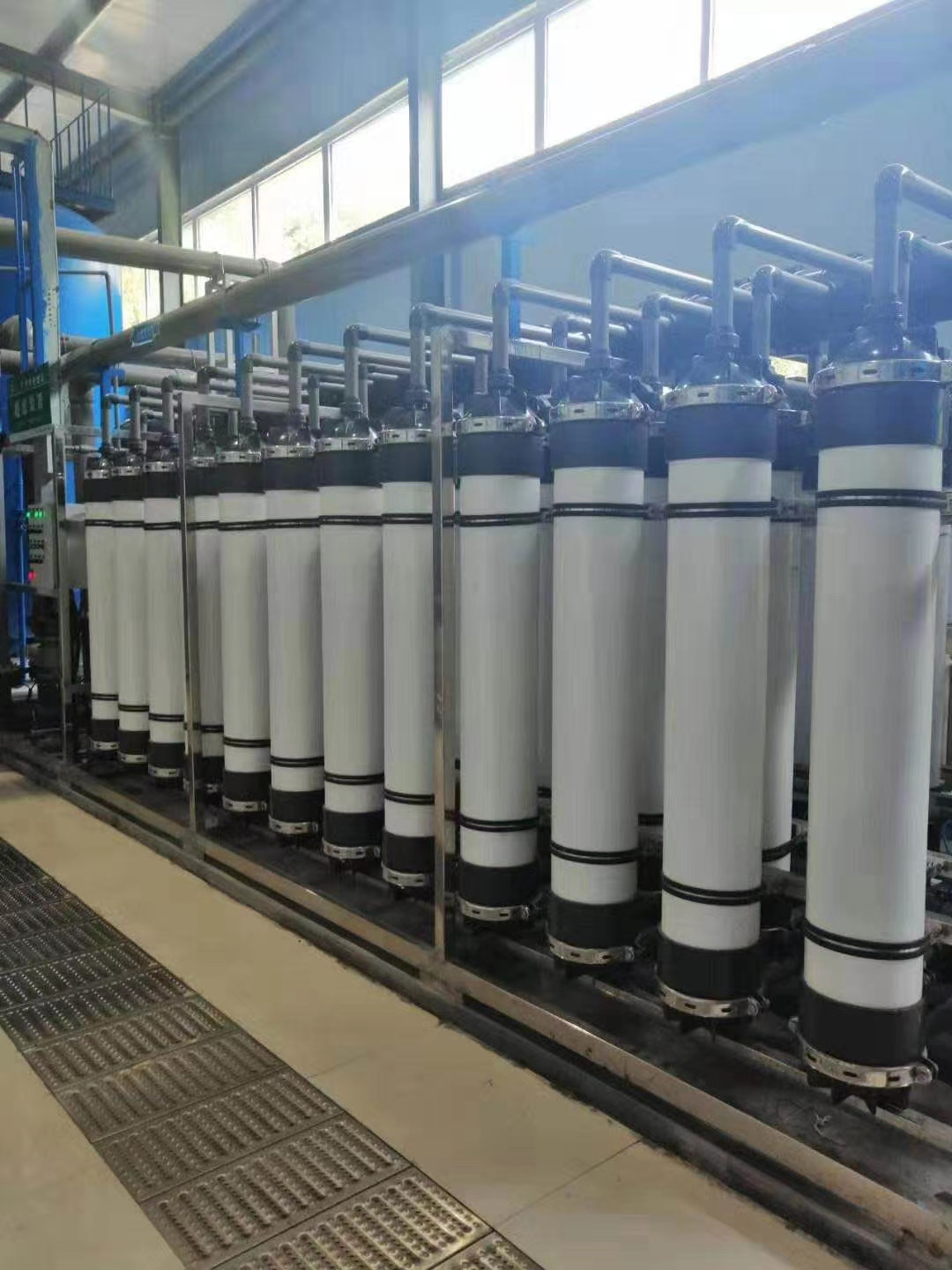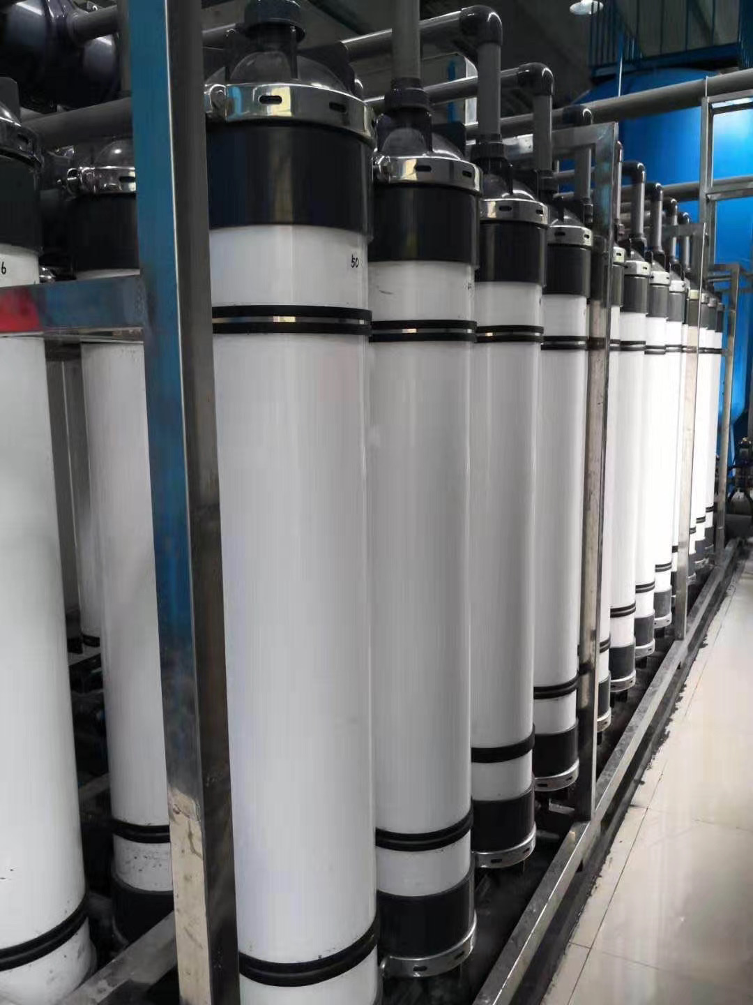 超滤是一种加压膜分离技术,即在一定的压力下,使小分子溶质和溶剂穿过一定孔径的特制的薄膜,而使大分子溶质不能透过,留在膜的一边,从而使大分子物质得到了部分的纯化。超滤原理也是一种膜分离过程原理,超滤利用一种压力活性膜,在外界推动力(压力)作用下截留水中胶体、颗粒和分子量相对较高的物质,而水和小的溶质颗粒透过膜的分离过程。通过膜表面的微孔筛选可截留分子量为3x10000—1x10000的物质。当被处理水借助于外界压力的作用以一定的流速通过膜表面时,水分子和分子量小于300—500的溶质透过膜,而大于膜孔的微粒、大分子等由于筛分作用被截留,从而使水得到净化。也就是说,当水通过超滤膜后,可将水中含有的大部分胶体硅除去,同时可去除大量的有机物等。